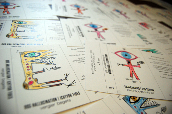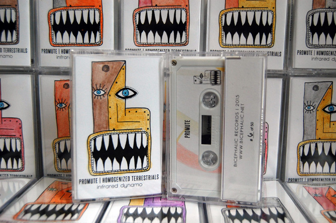The “Monster Series Tapes” for Bicephalic Records features 400 individually hand-painted and numbered cassette tape covers.
