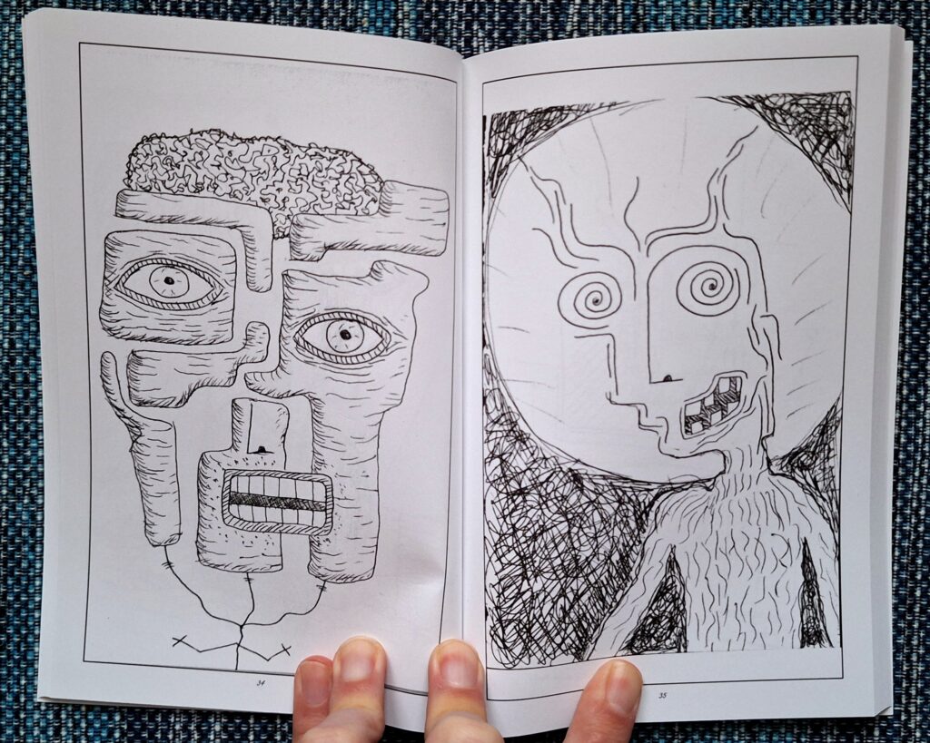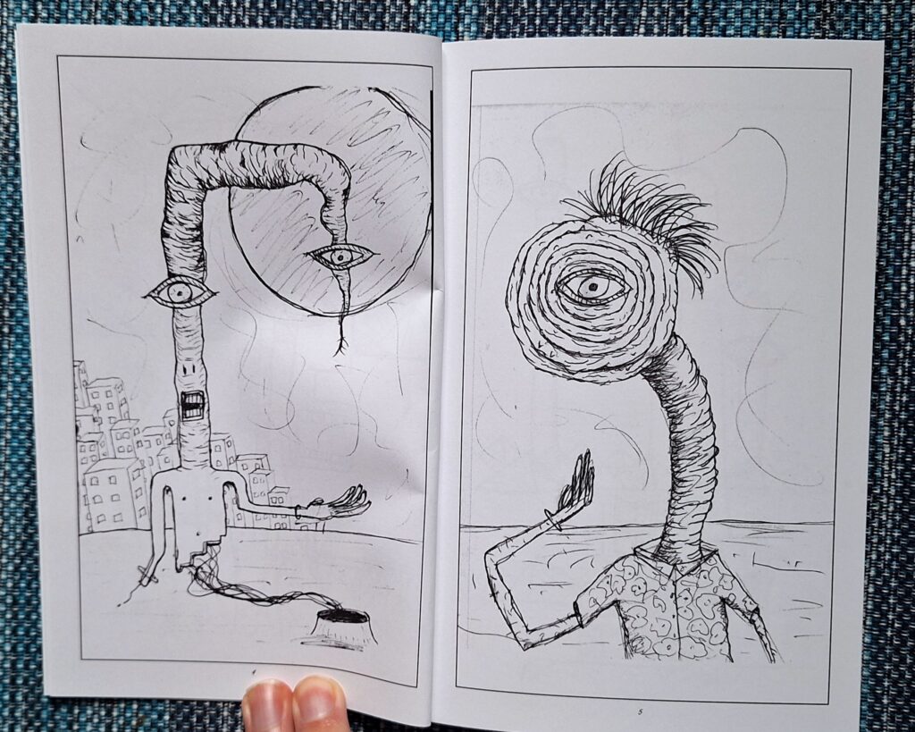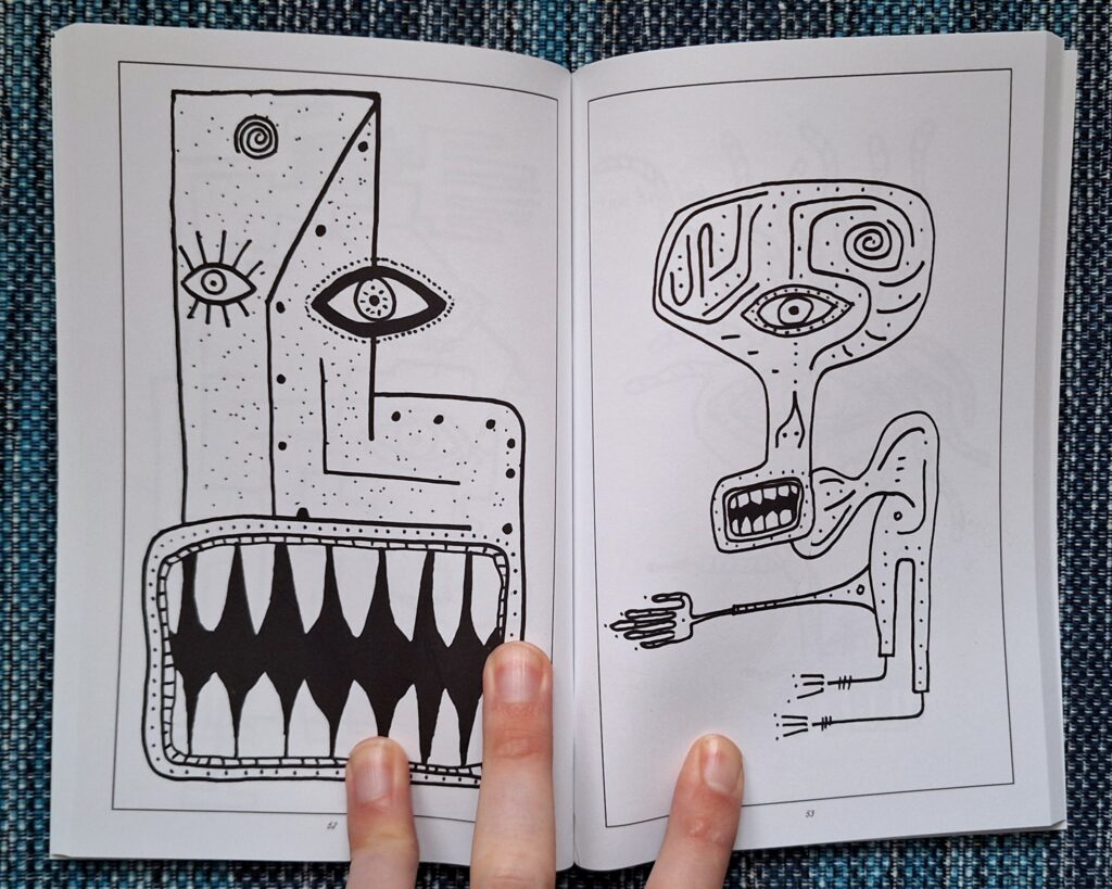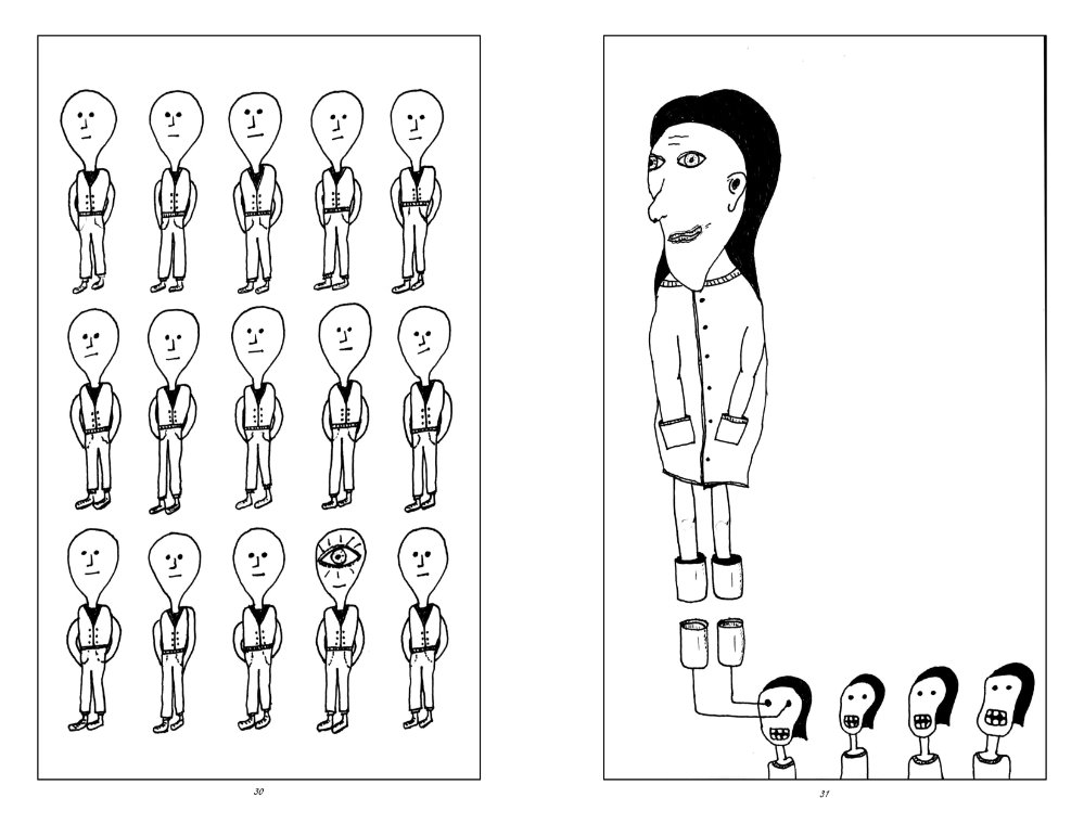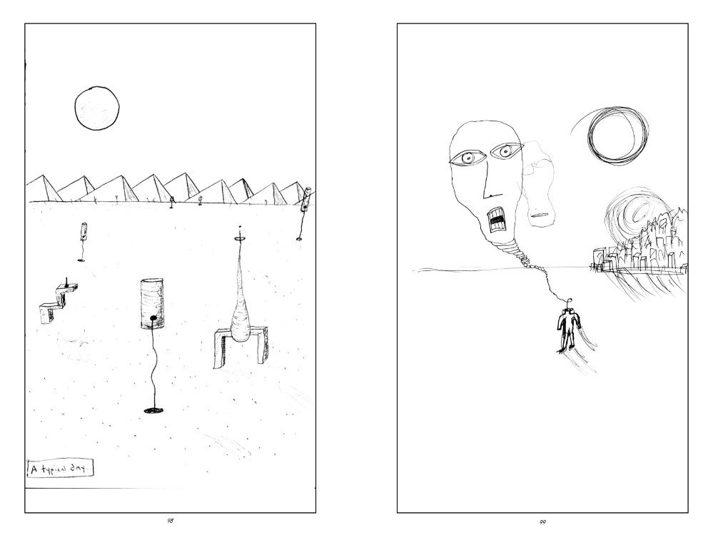 This is 100 pages of pure weirdness; featuring tornado gods, beach bums, and street dwellers. Each page spread was meticulously arranged and the entire book was organized into an abstract narrative.