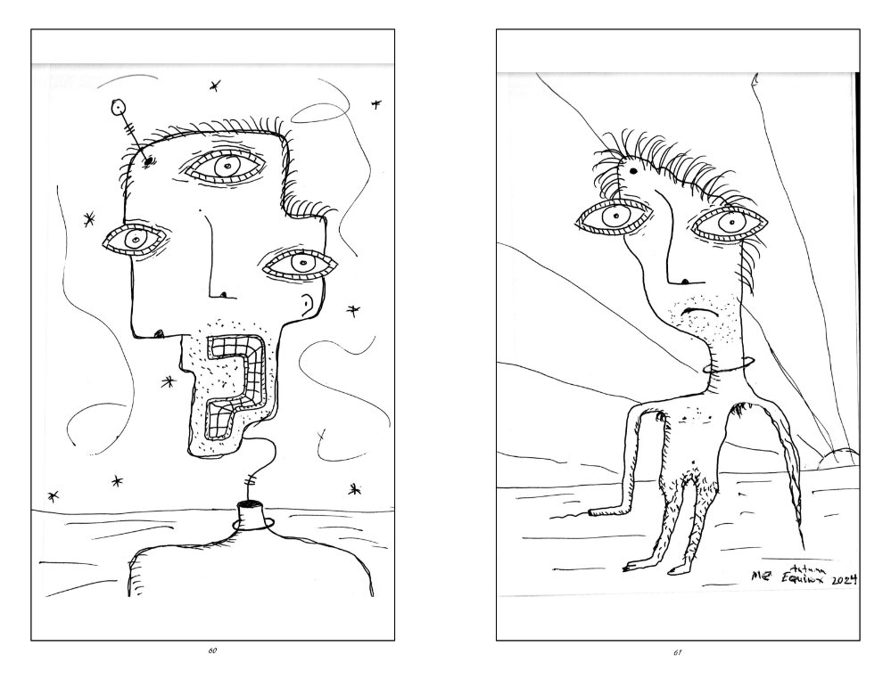 Notebook Sketches 2011-2025 is a collection of ink drawings sourced from the depths of my personal notebooks. This is a DIY, self-published, professionally printed art book.My sketchbook serves as an art journal, travelogue, and playground for ideas. Some of the drawings have been developed into watercolor or acrylic paintings. Most have never been seen by anyone.