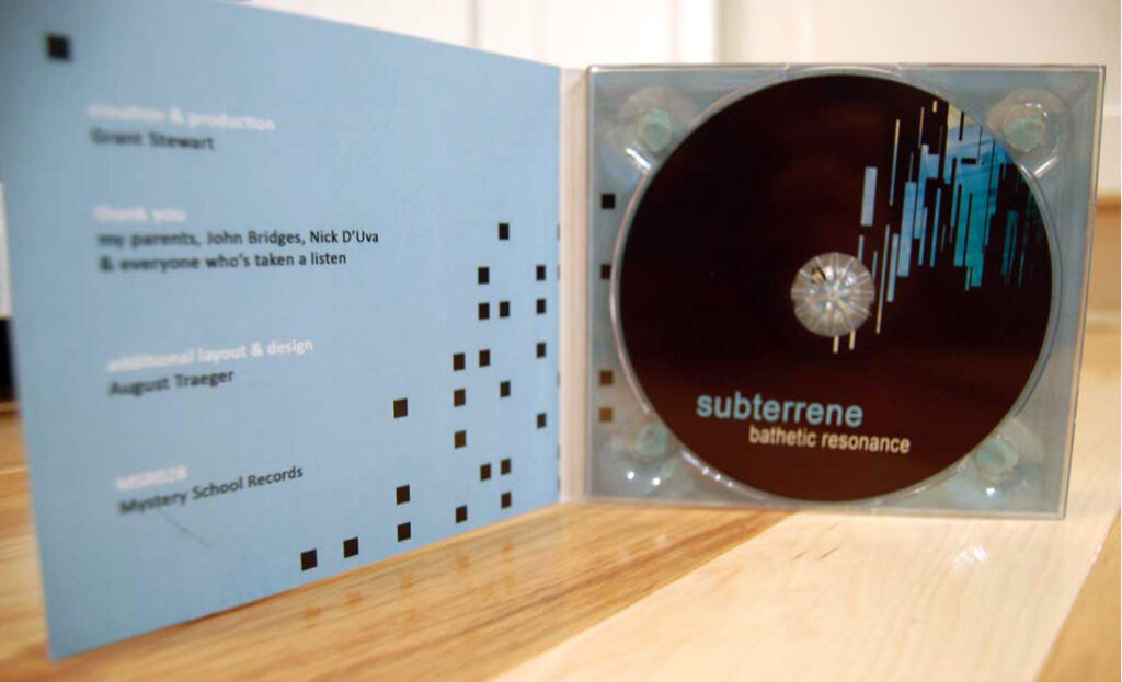 This is the artwork & design created for the ambient/electronic artist subterrene for their album “bathetic resonance.” The design is a cd digipak which is a format I love working with.