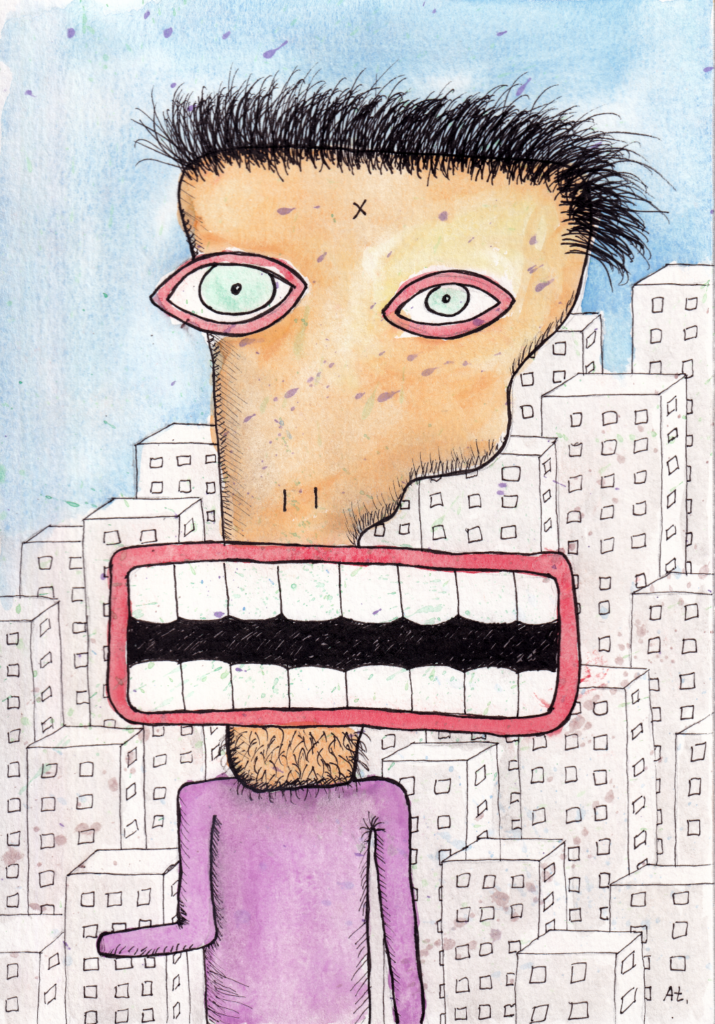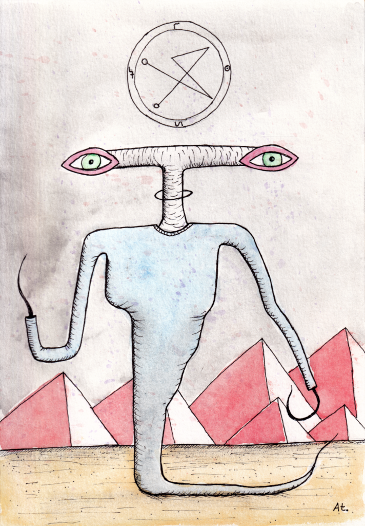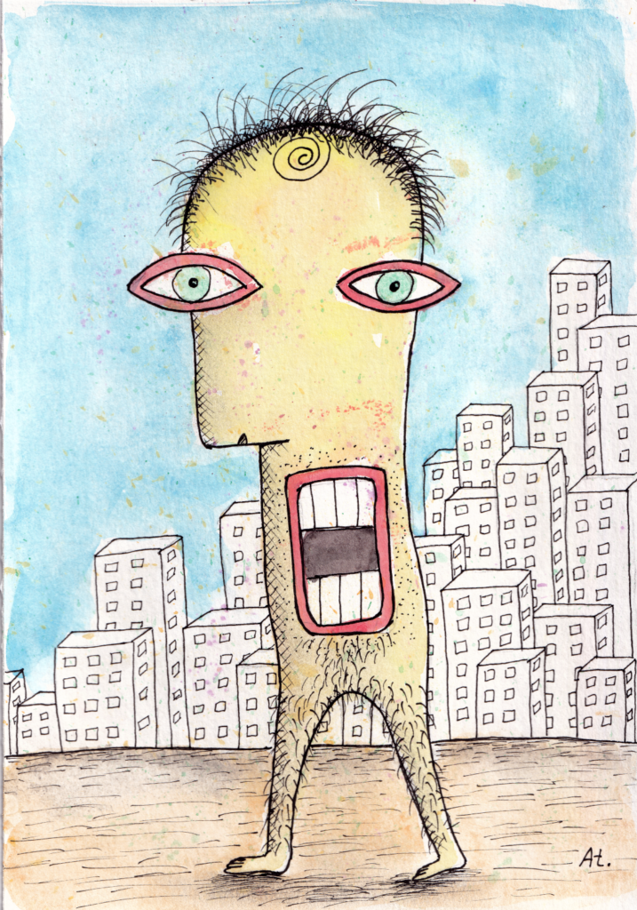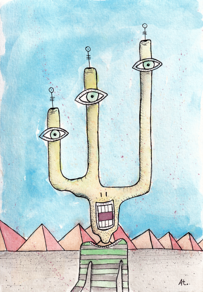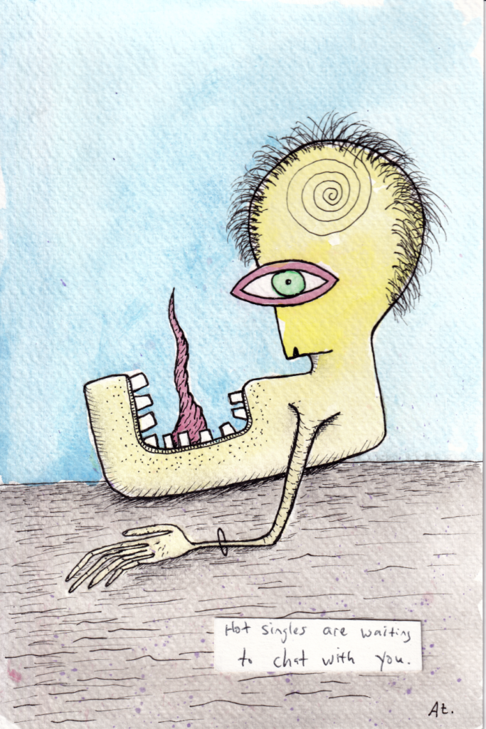 This is a series of watercolor and ink paintings I made 2023-2024 while traveling full time. Self portraits mixed with snapshot images of extraterrestrial vacationers to planet Earth.